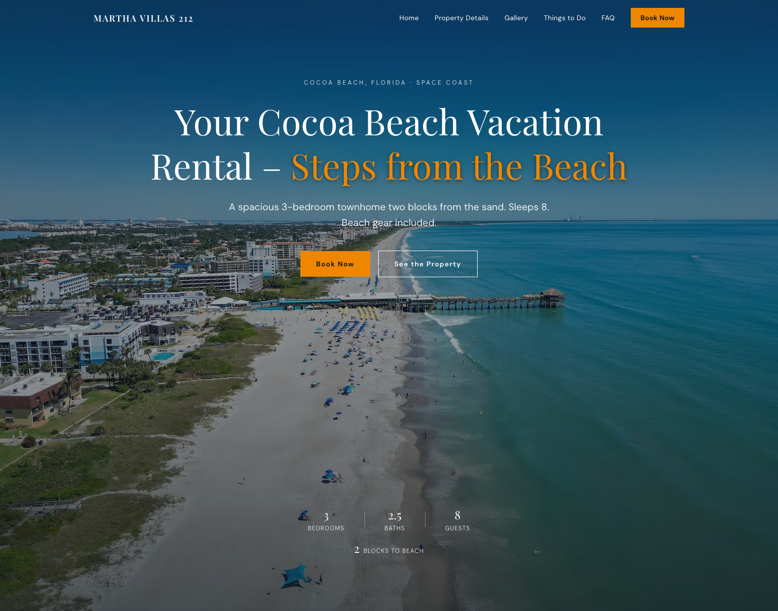 Built a custom-designed website for a Cocoa Beach vacation rental to drive more direct bookings and help the owner avoid third-party booking site fees.